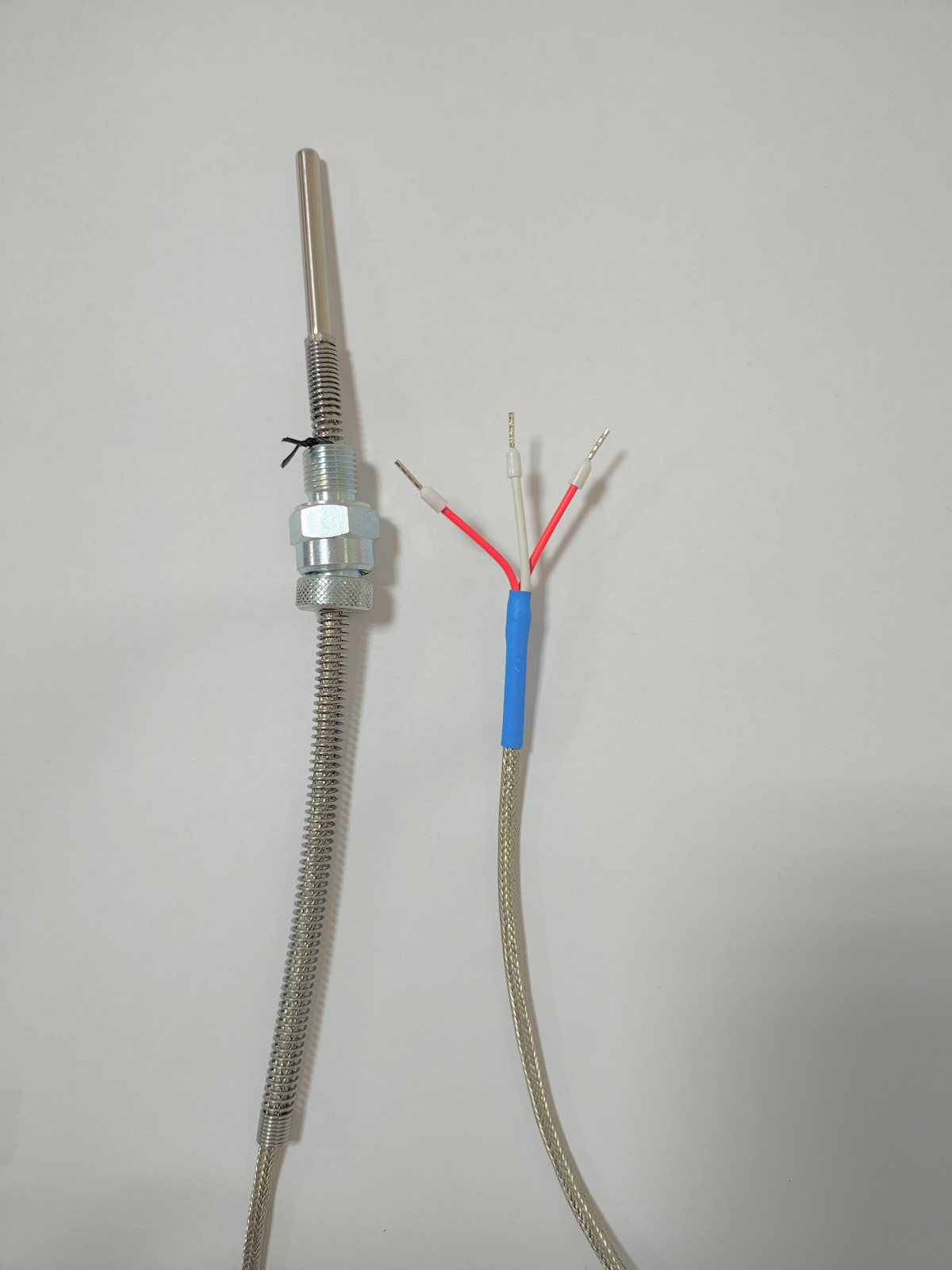 2000.00.797 (PT100B-6X50-A304-1/4-BAI-2.0TTS), Sonda de temperatura termorezistenta PT100, diametru teaca Ø = 6mm, lungime teaca 100mm, niplu de prindere pe arc, cablu de 2m cu tresa metalica